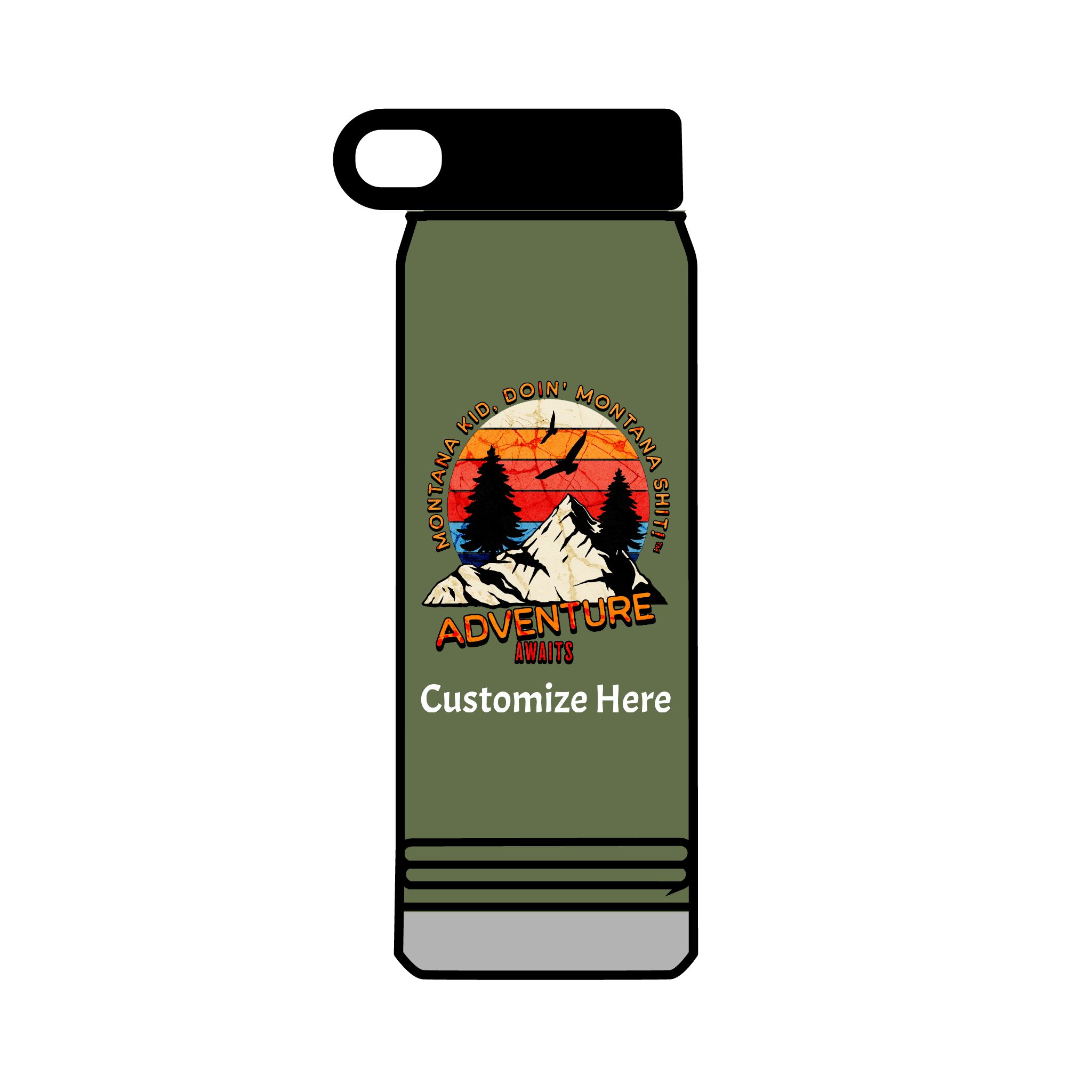 This 32oz stainless steel bottle isn’t here to babysit your thirst. It’s built for long hauls, steep climbs, heavy lifts, and zero excuses. The Adventure Vibes design wraps the bottle with bold Montana energy — printed on both sides of the exterior so the design shows no matter how you carry it.